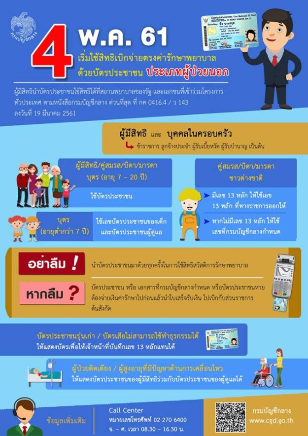 ผู้ที่มีสิทธิ์การรักษาของกรมบัญชีกลาง สามารถใช้บัตรประชาชนในการยื่นใช้สิทธิเบิกจ่ายตรงค่ารักษาพยาบาลประเภทผู้ป่วยนอกได้ทันที